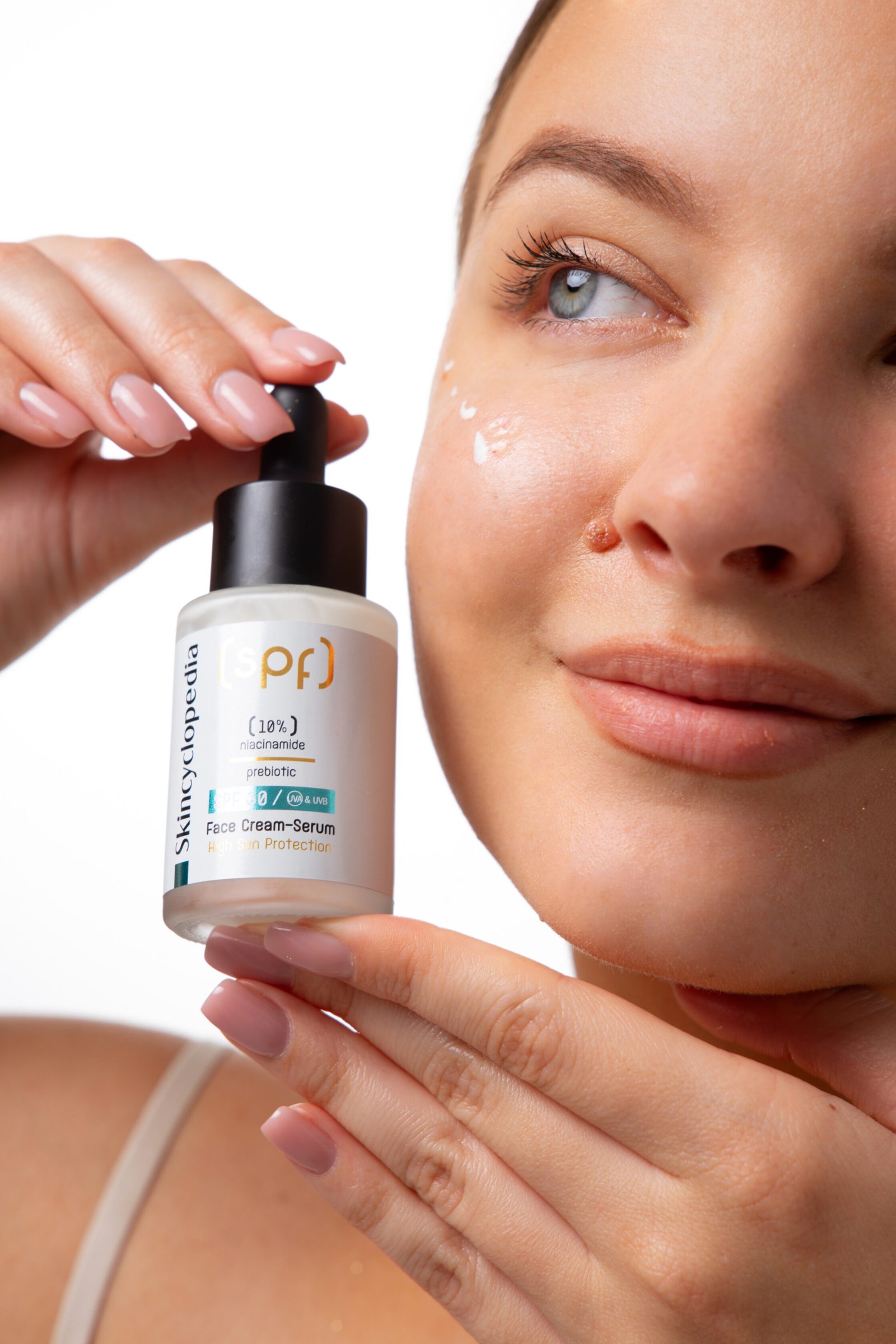 Este innovador producto combina tres funciones esenciales en un solo envase: un sérum facial anti-imperfecciones con efecto matificante, una crema hidratante de uso diario y un protector solar SPF 30 con alta protección frente a rayos UVA y UVB. Ideal para pieles normales a grasas, con poros dilatados, imperfecciones y falta de luminosidad.