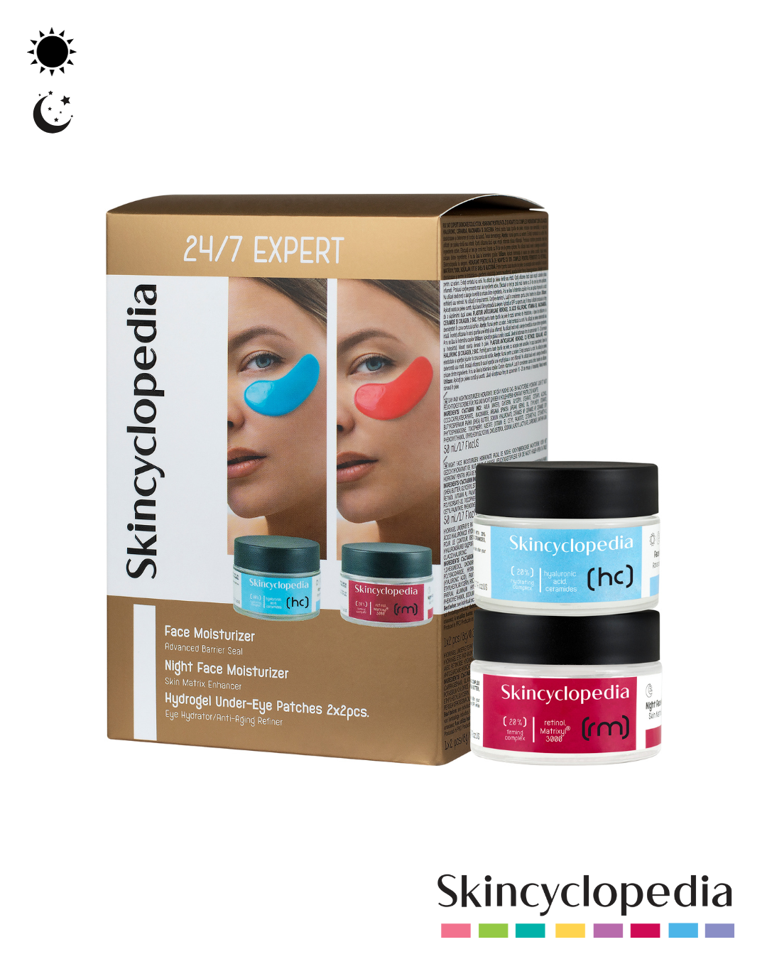 Aplicar la crema hidratante por la mañana sobre la piel limpia y seca. Por la noche, utilizar la crema reafirmante evitando el área de los ojos. Los parches se colocan sobre el contorno de ojos limpio y seco durante 15–20 minutos, preferiblemente por la mañana o antes de eventos especiales.