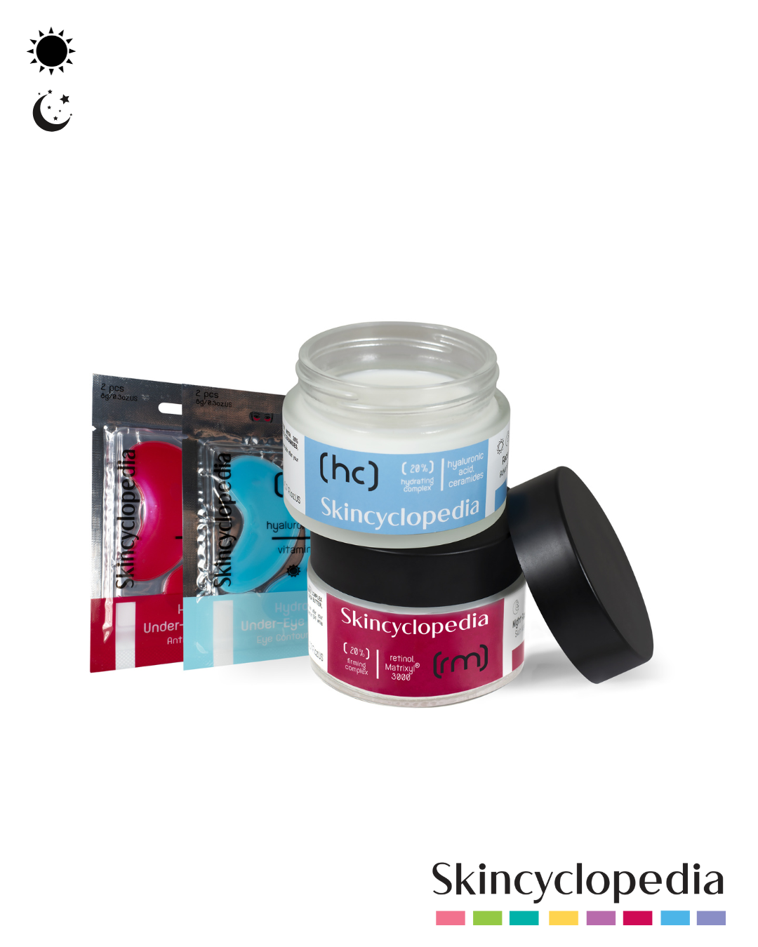 Parches de Hidrogel para Ojos con Retinoide, Escualano y Colágeno (2 uds): Suavizan arrugas, reducen hinchazón y mejoran la elasticidad del contorno ocular.